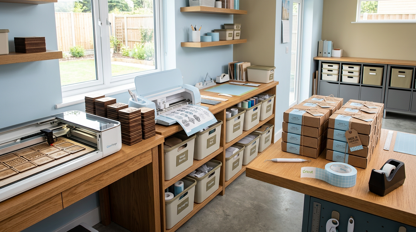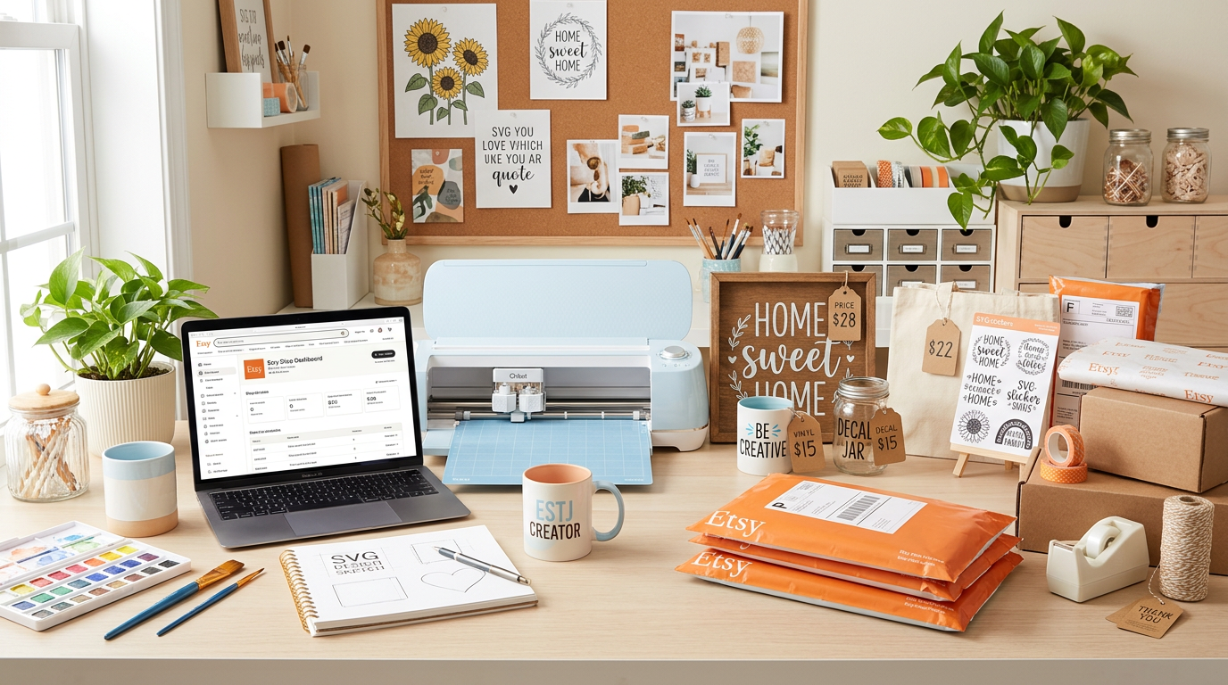 Launch your Etsy craft business using SVG design files. Covers shop setup, product photography, pricing, SEO, and scaling your handmade business.