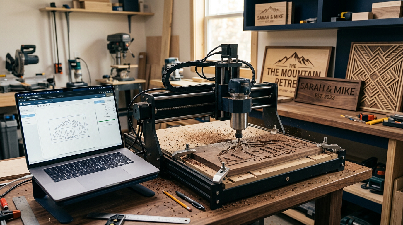 Learn V-carving with SVG files on your CNC router. Covers V-bit selection, CAM software setup, material choices, and techniques for professional results.