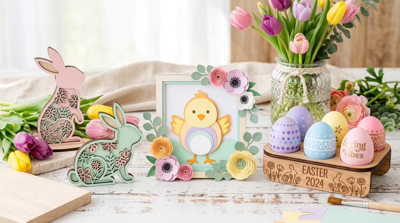Create charming Easter crafts with SVG files. Project ideas for egg decorating, bunny decor, basket tags, and spring home accents.