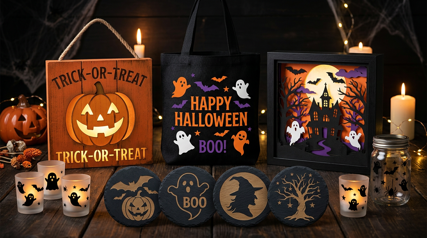 Get inspired with 25 Halloween craft projects using SVG files. From spooky laser-engraved signs to vinyl decals, find your next Halloween project here.