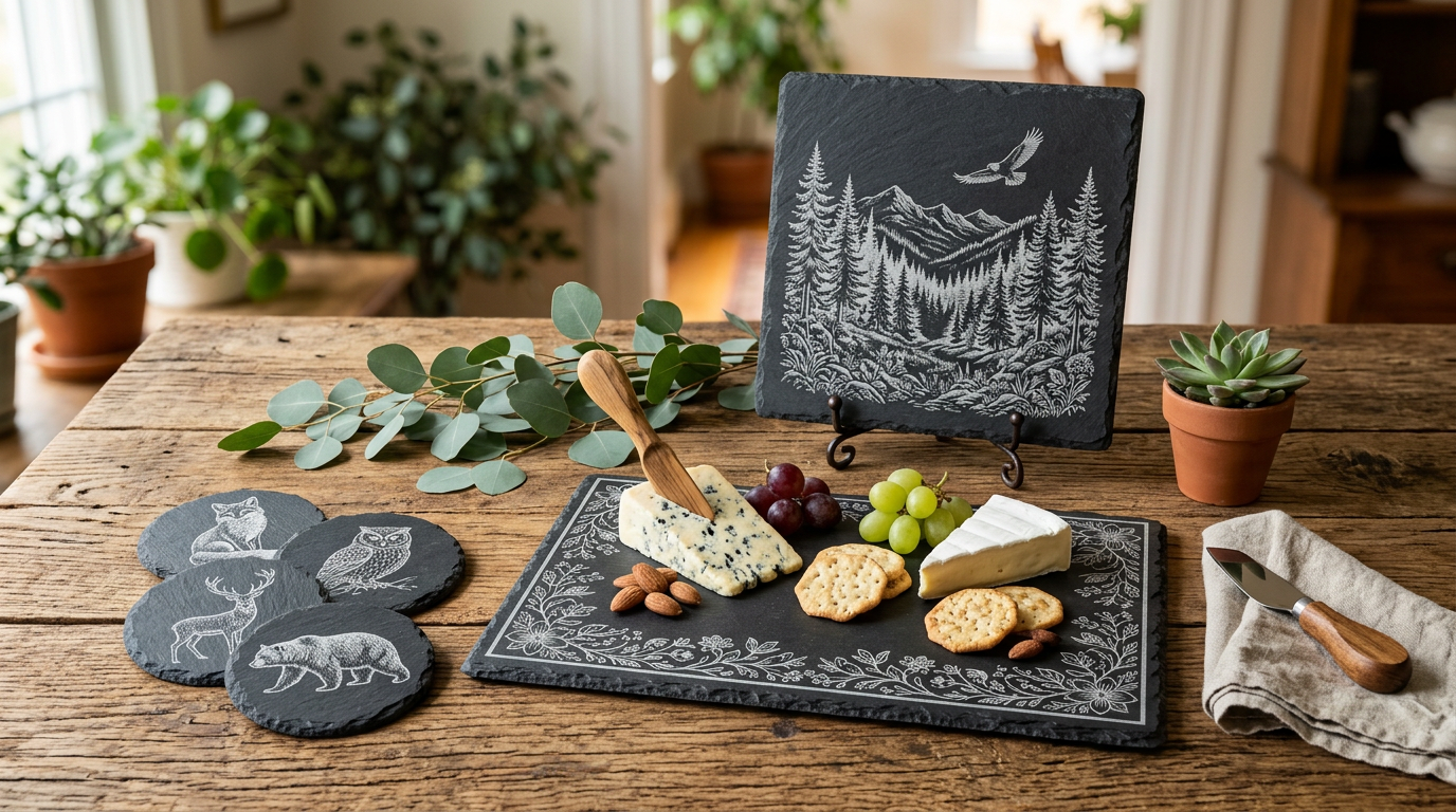 Learn how to laser engrave on natural slate. Covers settings, surface preparation, design tips, and project ideas for slate coasters, signs, and more.