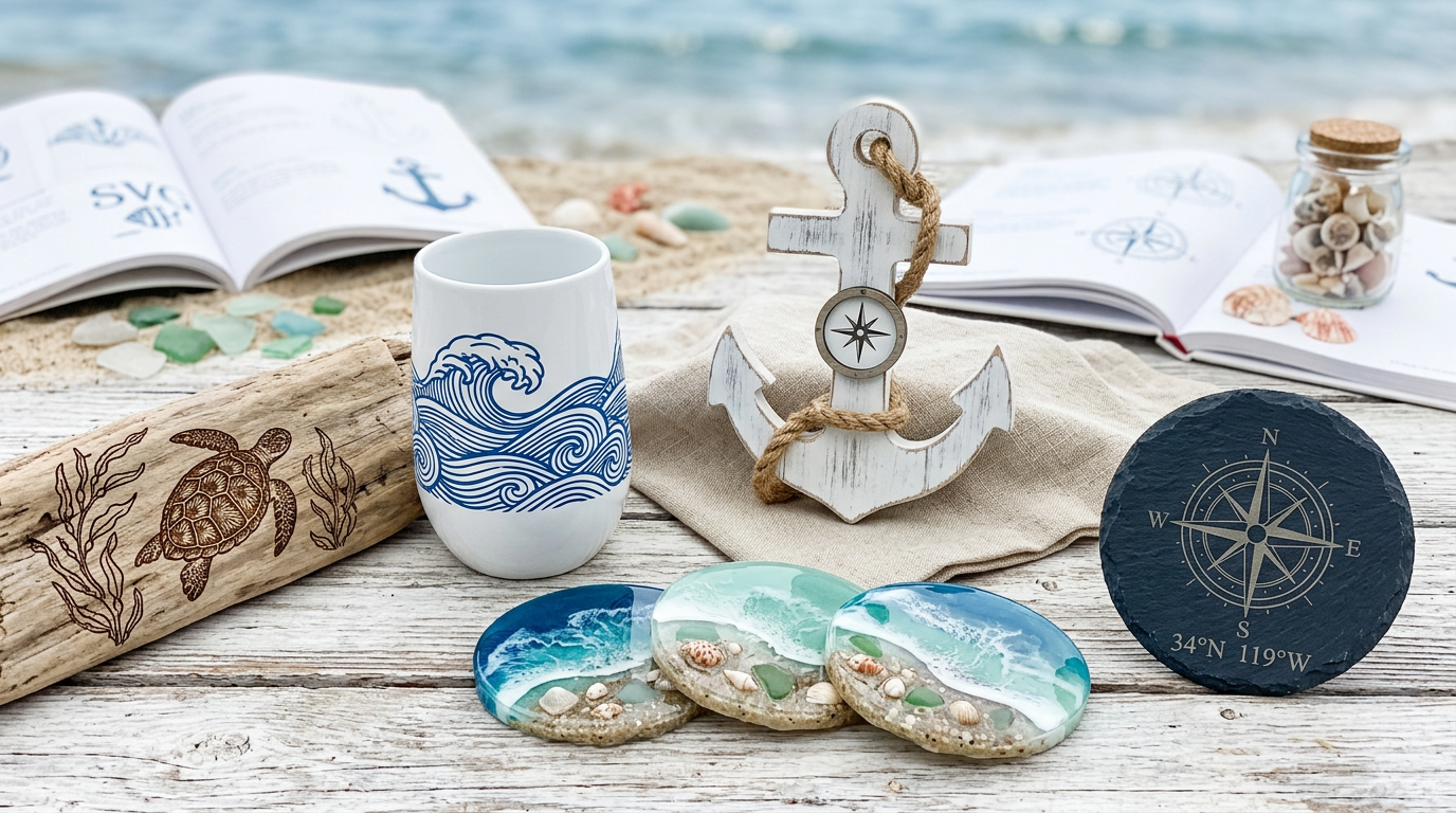 Create beautiful coastal and nautical crafts with ocean SVG designs. Project ideas for sea turtles, dolphins, anchors, and beach themes.