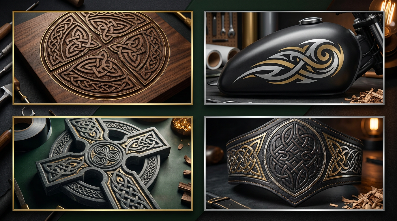 Explore tribal and Celtic SVG designs for laser engraving, vinyl cutting, and CNC projects. Project ideas, techniques, and design tips for bold tribal art.