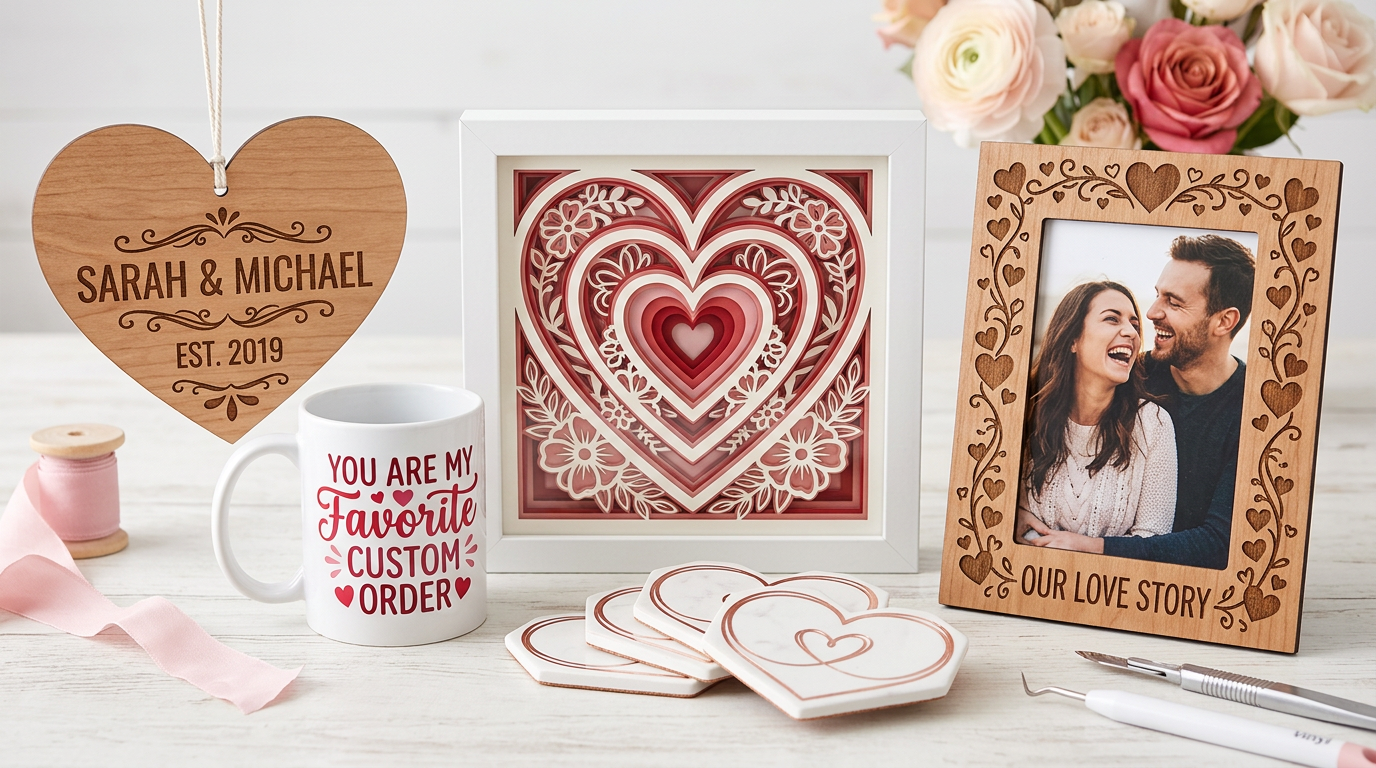 Create meaningful Valentine's Day gifts with SVG files. Project ideas for laser engraved keepsakes, vinyl decor, and handmade gifts for your special someone.