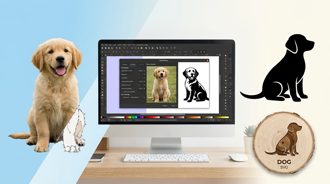 Learn to convert photographs into SVG vector files for cutting machines and laser engravers. Covers tracing tools, settings, and best practices.