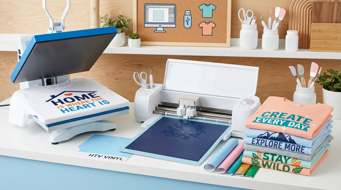 Complete guide to making custom t-shirts with SVG files and heat transfer vinyl. Covers HTV types, cutting, weeding, pressing temperatures, and troubleshooting.